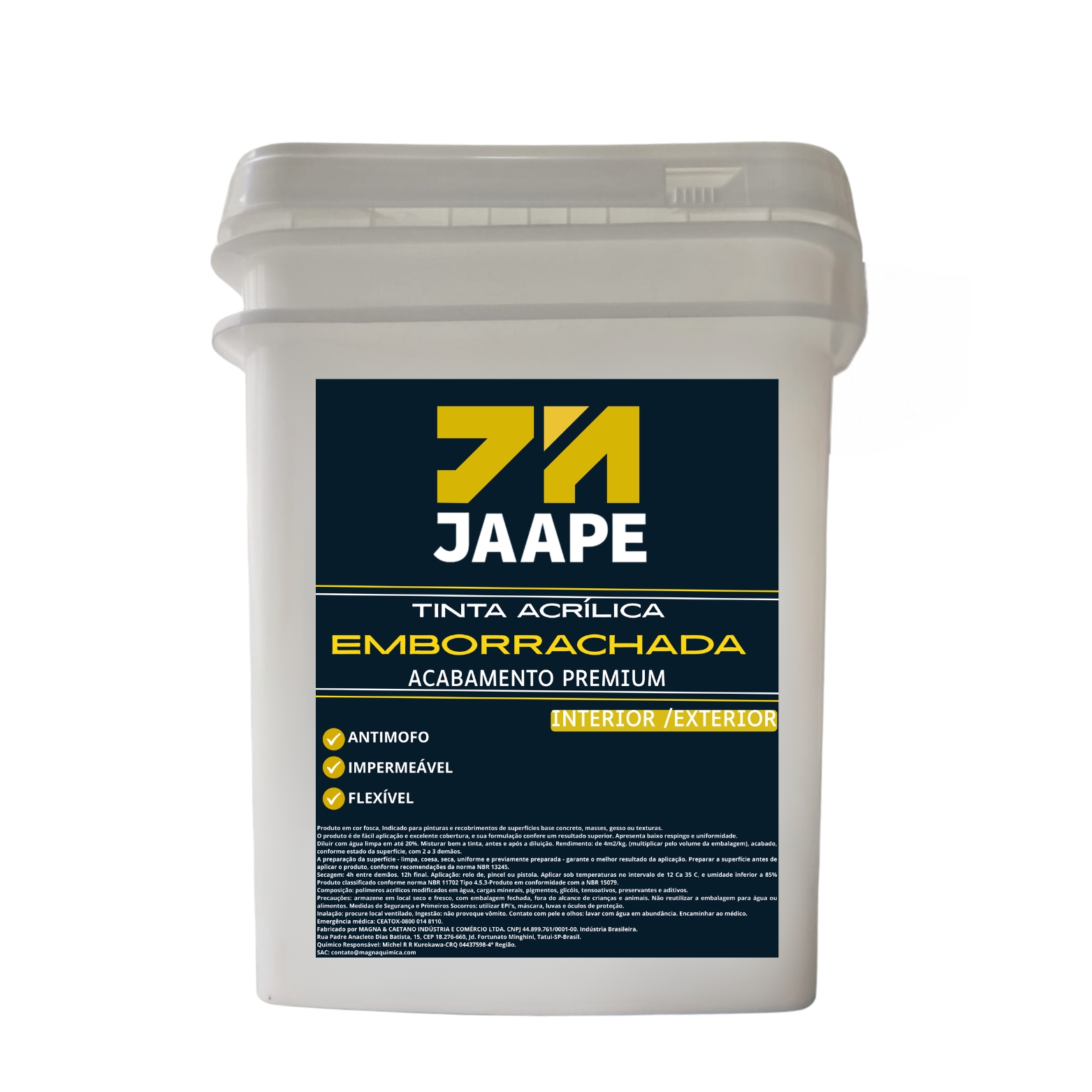 Produto em cor fosca, indicado para pinturas e recobrimentos de superfícies base concreto, masses, gesso ou texturas. O produto é de fácil aplicação e excelente cobertura, e sua formulação confere um resultado superior. Apresenta baixo respingo e uniformidade. Diluir com água limpa em até 20%. Misturar bem a tinta, antes e após a diluição. Rendimento: de 4m2/kg. (multiplicar pelo volume da embalagem), acabado, conforme estado da superfície, com 2 a 3 demãos.